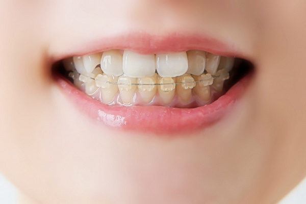 当院では金属のブラケットではなく、透明または白色のセラミックブラケットを採用し、装置の目立ちにくさにも配慮しています。
